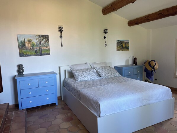 We had stayed at this location last September and enjoyed it so much that we returned this year for a longer stay of 16 days. Communication with the owner and her agent was easy and fast. We love the privacy and great views of the vineyards from the elevated location of the house. We watched the "vendage" (picking of the grapes), from the porch while enjoying an outdoor lunch. The house is well equipped with all the appliances and basic supplies provided. While it is a bit of a walk to the small town of Vacqueyras, it is an easy drive to supermarkets, restaurants, and neighbouring towns. There are great walks through the vineyards in the area.