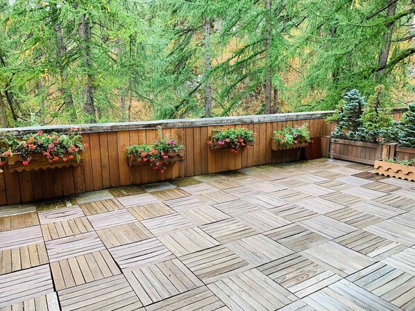 Pour votre séjour au ski ou vos vacances d’été à Val d’Isère, réservez ce charmant et lumineux 4 pièces avec une terrasse exposée Sud Est avec une jolie vue sur les pistes, les montagnes et la forêt.