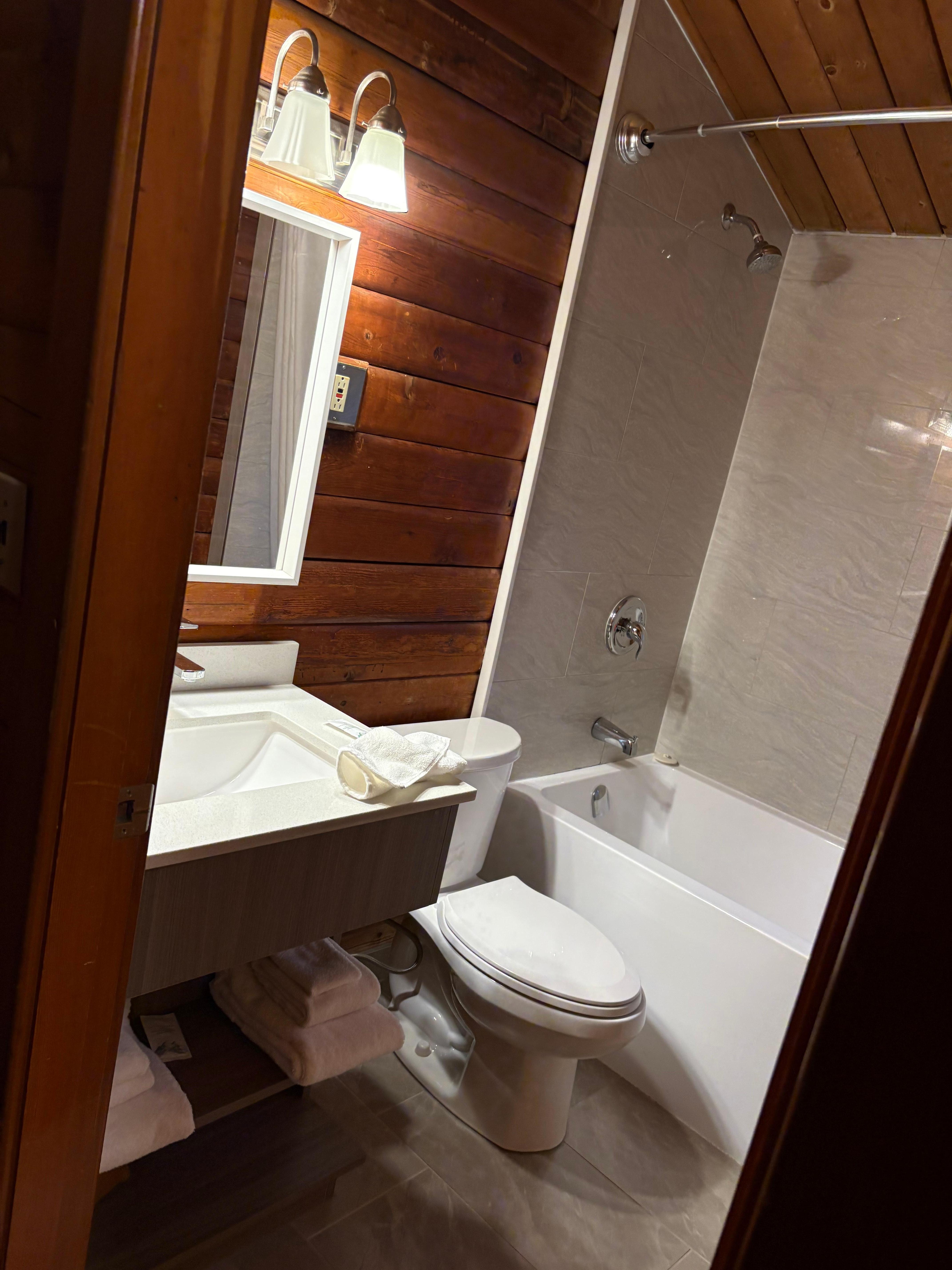 Bon emplacement après Banff et Jasper NP. Chambre rustique mais correcte. Par contre dans le descriptif il est indiqué Réfrigérateur et Micro ondes et nous n en avions pas donc pas évident pour manger et conserver ce que nous avons dans la glacière pas de machine à glace non plus