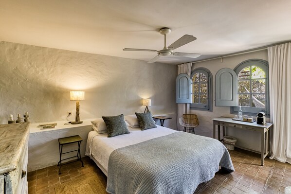 La suite Tierra incarne l'harmonie, le silence et l'équilibre. Elle est idéale pour les personnes à la recherche d'une escapade paisible. Elle dispose d'une petite terrasse et d'une vue sur le jardin, créant un espace invitant à profiter du plein air en toute intimité. À l'intérieur, un espace de vie confortable comprend un lit queen-size, assurant un sommeil réparateur, avec des équipements modernes tels que la climatisation, un ventilateur de plafond et une machine Nespresso pour le café du matin.