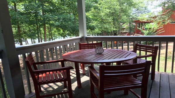 Cette spacieuse (cabine de 1650 pieds carrés) et confortable 3 chambres / 2. La maison de 5 salles de bains est située Lake Front sur le lac Wedowee dans le lotissement Possum Trot. Notre maison a tout ce dont vous avez besoin pour passer des vacances reposantes. Détendez-vous dans le style et profitez de cette maison de vacances joliment meublée et décorée avec goût sur l'un des lacs les plus propres du sud-est. Possum Trot a son propre embarcadère et aire de jeux. La maison est située au bord du lac et offre des vues spectaculaires sur l'eau libre. Planchers de bois franc sont partout dans la maison au premier étage et vous serez ravis de la sensation de montagnes et d'eau autour de vous! Il y a un salon avec une cheminée en pierre et une télévision grand écran qui est ouverte sur la salle à manger et une cuisine spacieuse. La cuisine est bien équipée et dispose d'un généreux placard et d'un espace de comptoir avec des appareils électroménagers en acier inoxydable. Hors de la cuisine, vous trouverez une demi-salle de bain et la buanderie. Détendez-vous dans la chambre principale au niveau principal, qui comprend un lit à baldaquin queen (lit très haut sur le sol, des marches fournies) avec une télévision à écran plat. Hors de la salle de bain principale, il y a un grand walk-in en cèdre (fabriqué à partir des arbres de cèdre qui ont été enlevés pour construire la maison). Vous pouvez également sortir sur la terrasse arrière de la salle à manger ou la chambre des maîtres. La maison offre un grand pont autour du pont qui surplombe le lac et dispose d'un barbecue à gaz et est l'endroit idéal pour profiter de votre tasse de café du matin ou de rock dans une chaise berçante. A l'étage, vous trouverez deux grandes chambres et une salle de bain complète avec un combo douche / baignoire. L'une des grandes chambres à l'étage dispose de 2 lits queen et un futon avec une télévision à écran plat. L'autre grande chambre à l'étage a des lits superposés, un lit double avec lit gigogne et une télévision à écran plat. Il y a aussi une terrasse de la chambre avec lits superposés qui surplombe le lac. Cette magnifique maison avec un toit en tôle peut accueillir jusqu'à 11 personnes. Toutes les serviettes, les draps, la vaisselle et les ustensiles de cuisine fournis. Notre maison est complètement meublée, joliment décorée et très propre et bien entretenue. Marcher vers l'eau il y a une passerelle en pente douce. Vous trouverez un pavillon public couvert, notre hamac, notre quai et nos balançoires. Nous avons également une très grande cour latérale herbeuse à côté de notre cabine. Nous offrons un paddleboard, un pédalo, un kayak gonflable pour 2 personnes, un kayak pour homme et des cannes à pêche. Nous avons aussi un foyer portable pour les feux de joie et les s'mores. Notre service de télévision est avec Direct TV et nous offrons également un lecteur DVD avec la maison. Pas d'animaux et non fumeur.