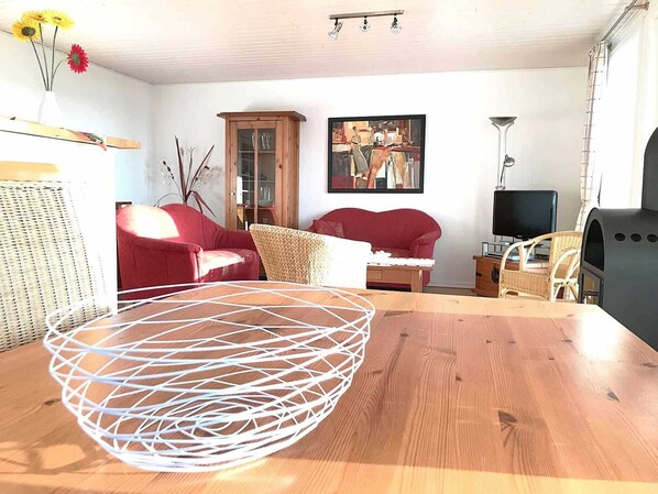 Les maisons d'habitation se composent chacune de 4 appartements simples. Les skippers sont situés au rez-de-chaussée et ont une surface habitable de 70 m² avec 2 chambres à coucher, jacuzzi et sauna, idéal pour 4 personnes. La terrasse spacieuse mène directement dans le jardin. "Nos photos montrent des exemples d'installations différentes"
