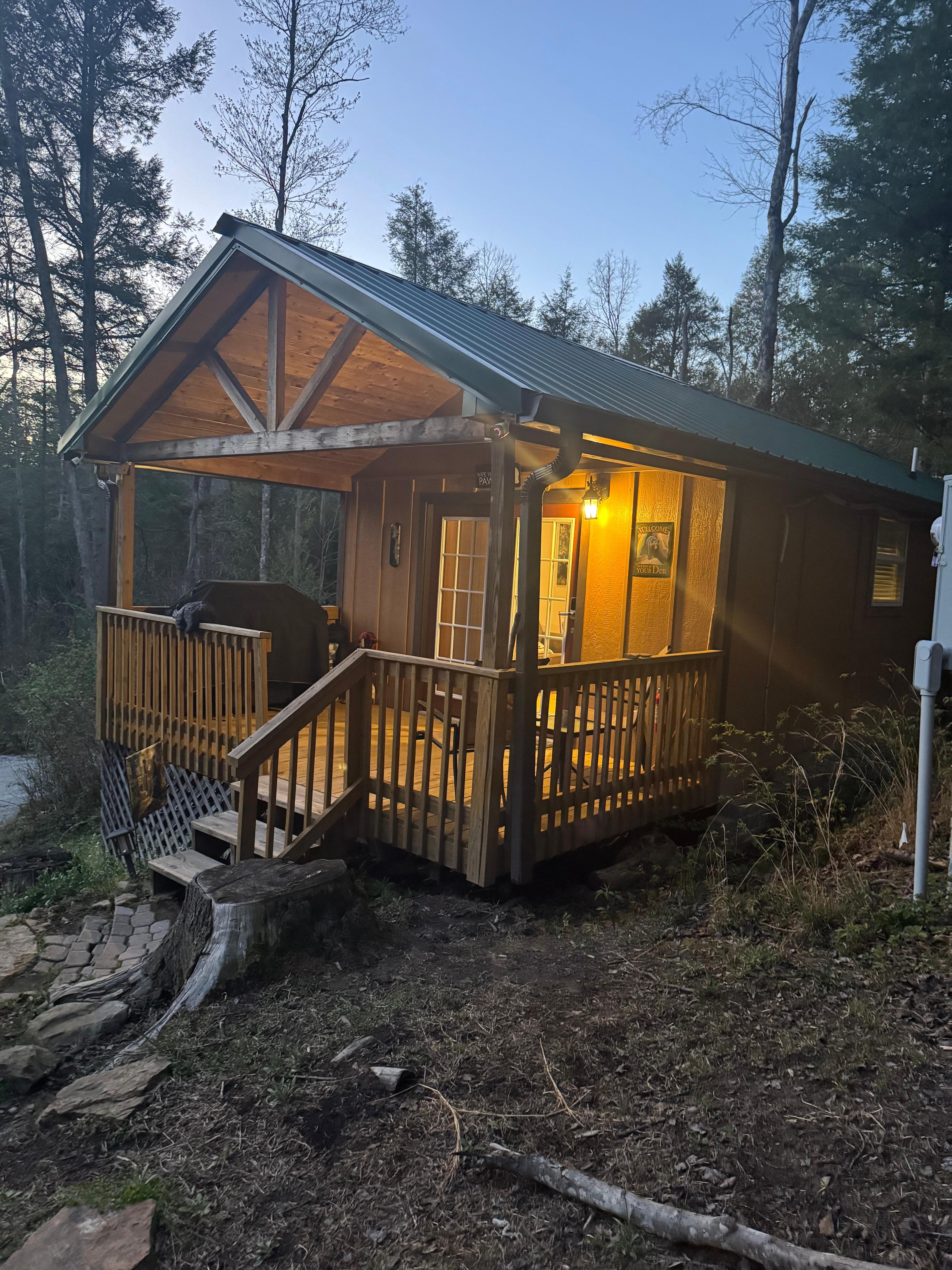 As a traveler, you'll enjoy the convenience of free WiFi and the comfort of a washing machine and dryer, making your stay even more relaxing. The fully stocked kitchen, complete with a stove, oven, refrigerator, grill, microwave, coffee maker, toaster, and ice maker, allows you to prepare delicious meals during your stay. The cabin also provides essential amenities such as a bathroom, towels, basic soaps, a hair dryer, an iron and board, and climate control with air conditioning and heating. The extra bed is an air mattress that can be set up in the living room. All bedding is provided.