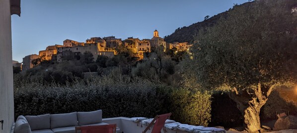 La maison a une vue magnifique sur le village de jour comme de nuit.