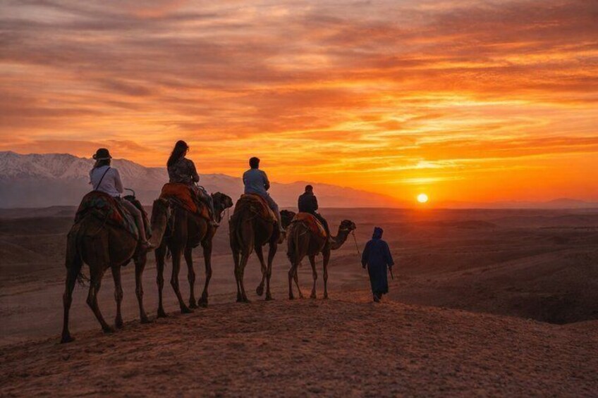 Agafay Desert Camel Ride Sunset & Dîner berbère avec spectacle de feu