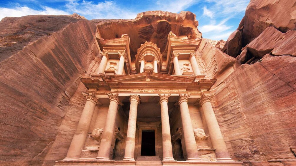 Petra, la légendaire « ville rose-rouge » sculptée dans le grès il y a plus de deux millénaires, fait partie de la liste de tous les voyageurs sérieux. Cette excursion d'une journée au départ d'Eilat transforme un rêve lointain en une aventure sans effort qui commence au moment où notre chauffeur vient vous chercher à votre hôtel entre 8 h 15 et 8 h 30. Installez-vous dans un véhicule moderne et climatisé et regardez les crêtes sculptées du désert d'Arava défiler pendant que votre escorte excursion s'occupe des formalités frontalières à l'avance, vous permettant ainsi de profiter du voyage.