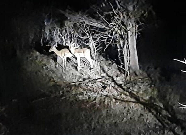 Sterrenkijken en Maanlichtsafari in 4x4: Geen enkele Afrikaanse vakantie is compleet zonder sterrenkijken. Je zit in het comfort van onze safarijeep terwijl onze gids op zoek gaat naar wilde dieren. Op onze sterrenkijklocatie in de bush kunnen onze gasten op een heldere dag een adembenemende reeks hemelobjecten verwachten, van de fonkelende sterren die aan de hemel staan. Afhankelijk van de helderheid van de nacht kunnen ze ook een glimp opvangen van verre sterrenstelsels. We voorzien je van een speciale zaklamp, betrekken je erbij en maken je safarigids tijdens onze tocht, op zoek naar dieren in de bush. Onze gediplomeerde safarigids zal aangeven wanneer onze gasten de fakkels mogen gebruiken. Safari-ervaring bij maanlicht en sterrenkijken We doen deze ervaring in een nationaal park, dus de kans dat je dieren ziet neemt toe, maar is niet gegarandeerd, want wilde dieren lopen vrij rond in dit niet-omheinde gebied. De bush is geen dierentuin, dat in gedachten en met waardering voor de natuur plus een gevoel voor avontuur ben je helemaal klaar voor een unieke buitenervaring in de Afrikaanse bush bij nacht. Ervaar de wildernis, alleen met Savannah Adventures Misschien hebben we geluk en zien we veel dieren… of misschien hebben we minder geluk,… maar onze gidsen zullen met jouw hulp en de zaklampen hun best doen om ze voor je te vinden. Op safari gaan in en rond de Victoria Watervallen in een Safari Jeep (Game viewer) is waar onze gasten van houden en waarvoor ze naar Afrika zijn gekomen. Ervaar het safarigevoel en de sensatie 's nachts tijdens onze nacht- en sterrenkijksafari.
