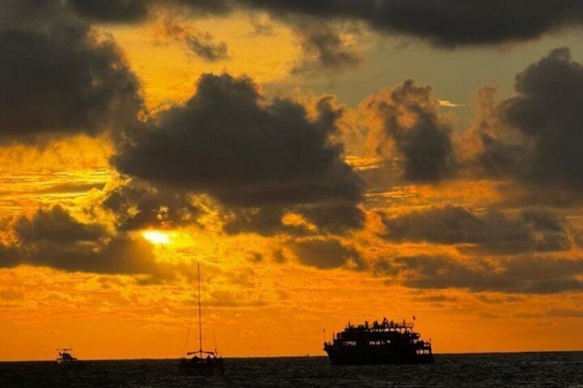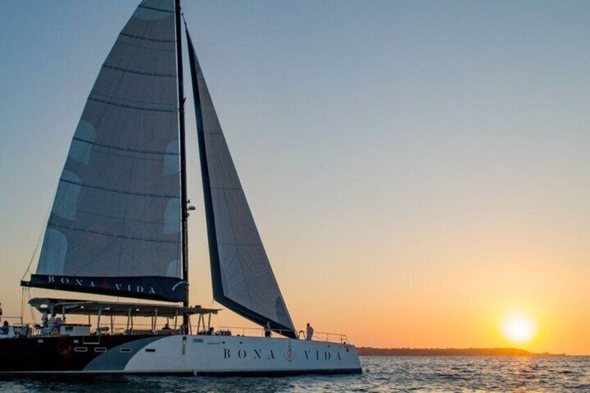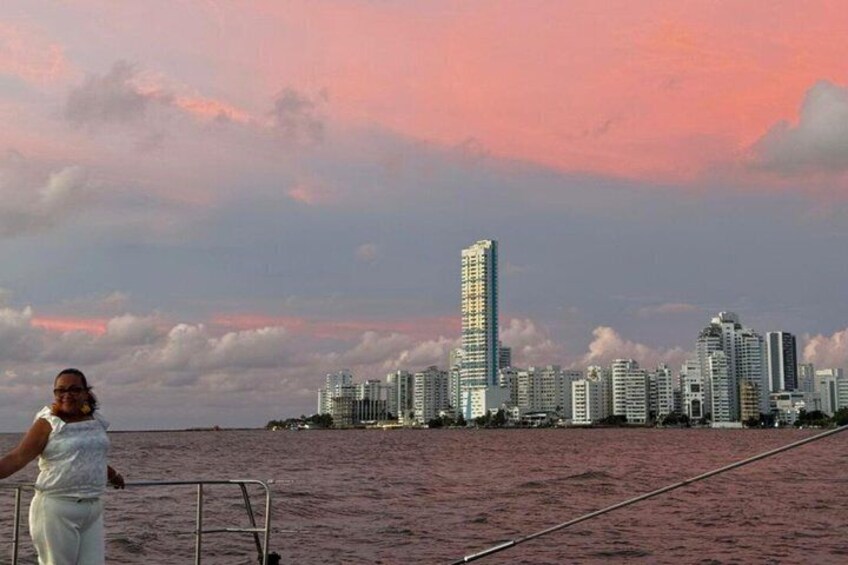 Coucher de soleil sur la baie de Carthagène, en Colombie, sur un yacht de luxe