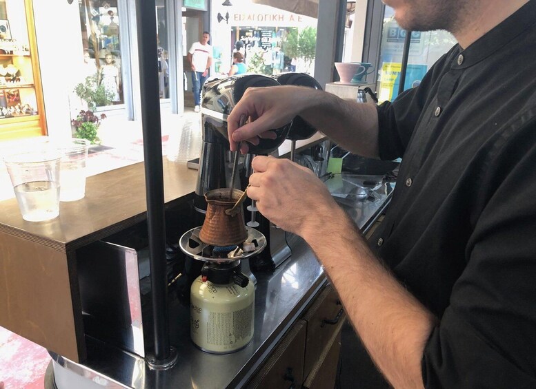 Het is tijd voor je ochtendkoffie! En wat is er lekkerder dan een hete traditionele Griekse koffie bereid door Panagiotis of Giorgos, die de geheimen van de juiste bereiding onthullen.