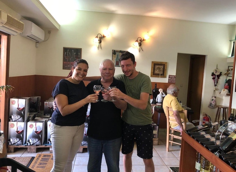 Ontdek alle lokale variëteiten, waaronder Fokiano, Roditis, Malaguzia en Moschofilero, en hoe ze worden gecombineerd met buitenlandse variëteiten om uitstekende witte, rosé en rode wijnen te produceren door middel van een korte wijnproeverij samen met Giannis.