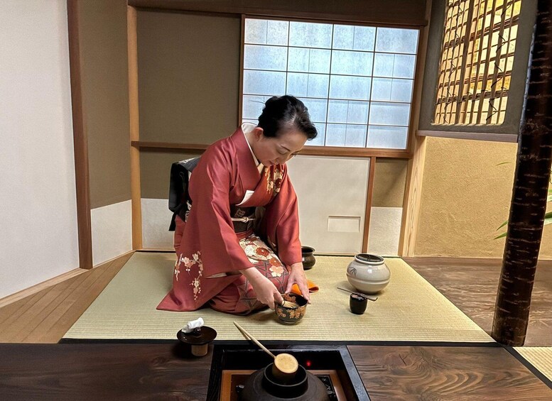 Assistez à une démonstration par l'instructeur, mettant en valeur les mouvements gracieux et l'hospitalité saisonnière qui font partie intégrante de la cérémonie du thé.