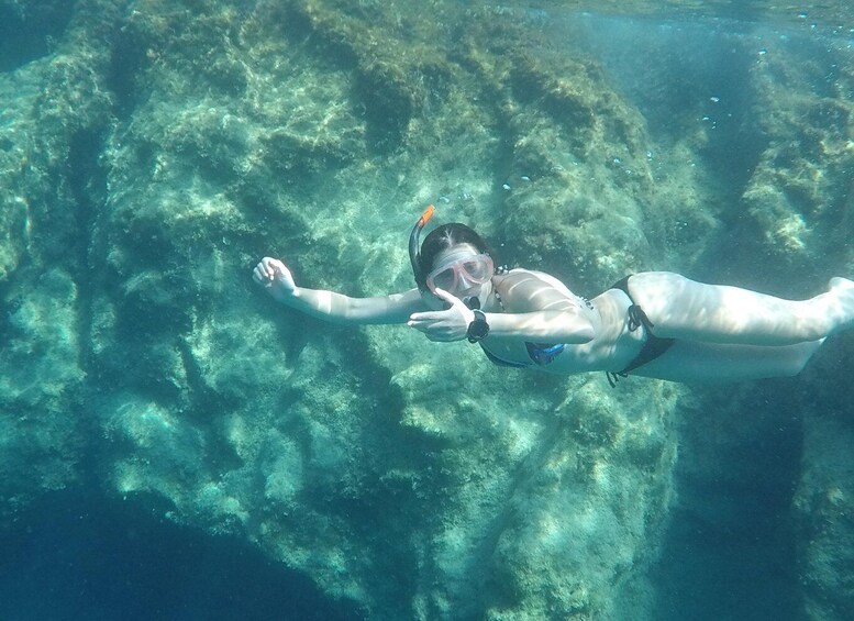 Ensuite, entrez dans un autre monde, en pagayant à travers un extraordinaire Sea Canyon, qui mène à Navarone Bay. Ici, profitez d'un peu de temps pour explorer sous la surface de l'eau, en faisant une pause dans la pagaie pour faire de la plongée avec masque et tuba dans cette belle zone isolée avec ses bleus et verts étonnants, et son eau fraîche et rafraîchissante.