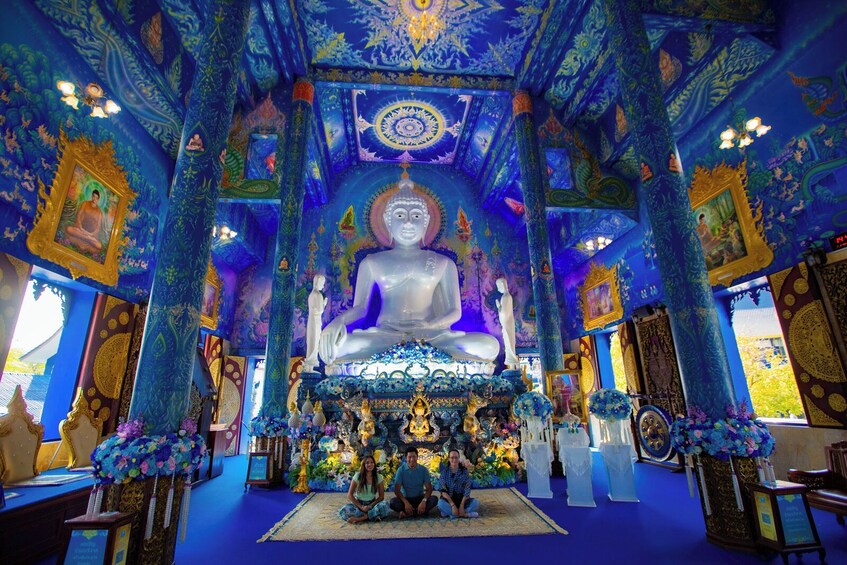 Laat je betoveren door de levendige saffieren muren, gouden details en hemelse muurschilderingen die over het interieur van de tempel dansen.