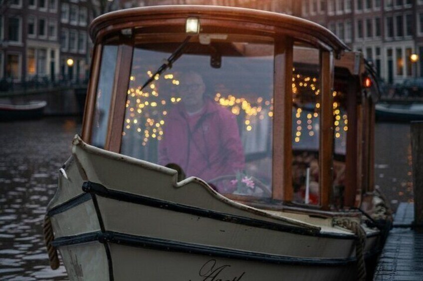 Van 1 november tot 1 maart, maak ik gebruik van een mooie klassieke salonboot. Deze is dus helemaal gesloten en verwarmd. Let op geen toilet aan boord.