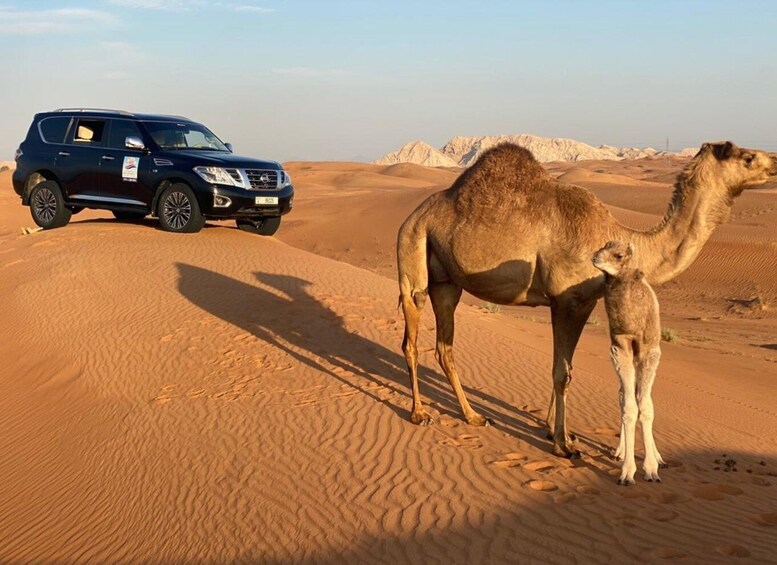 Safari matinal dans le désert en 4x4 partagé et promenade à dos de chameau