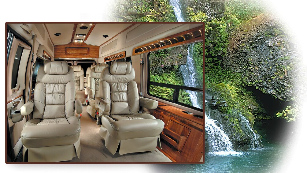 Vous commencerez la journée par un vol en hélicoptère jusqu'à Hana pour revenir ensuite en empruntant la célèbre route de Hana à bord d'un luxueux monospace-limousine.