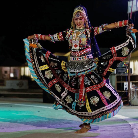 Deze optie omvat een pick-up vanuit Jodhpur, een gecombineerde kameel- en jeepsafari door de Osian woestijn, uitzicht op de zonsondergang, een traditioneel buffetdiner op een woestijncamping, live folkmuziek en dansshow, en laat in de avond terugbrengen naar Jodhpur.