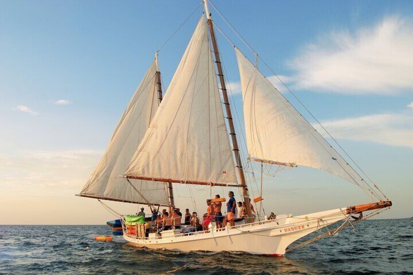 Geniet van een zonsondergangzeil als geen ander met boetes wijnen uit de hele wereld en hors d'oeuvres om hen te complimenteren. Geweldig voor die speciale gelegenheid.
