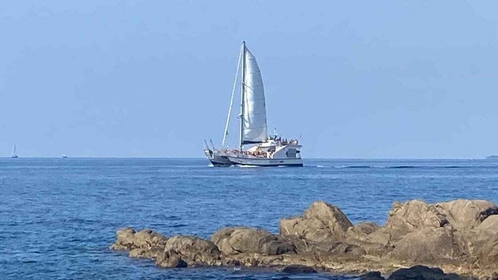 Lloret de Mar: Catamaran cruise met eten, drinken en muziek