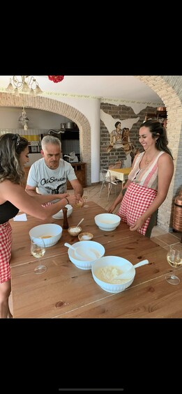 We zijn nu klaar om te genieten van een heerlijk gerecht van handgemaakte tagliatelle, vergezeld van een lekker glas van onze biologische wijn en tot slot de geweldige tiramisù.