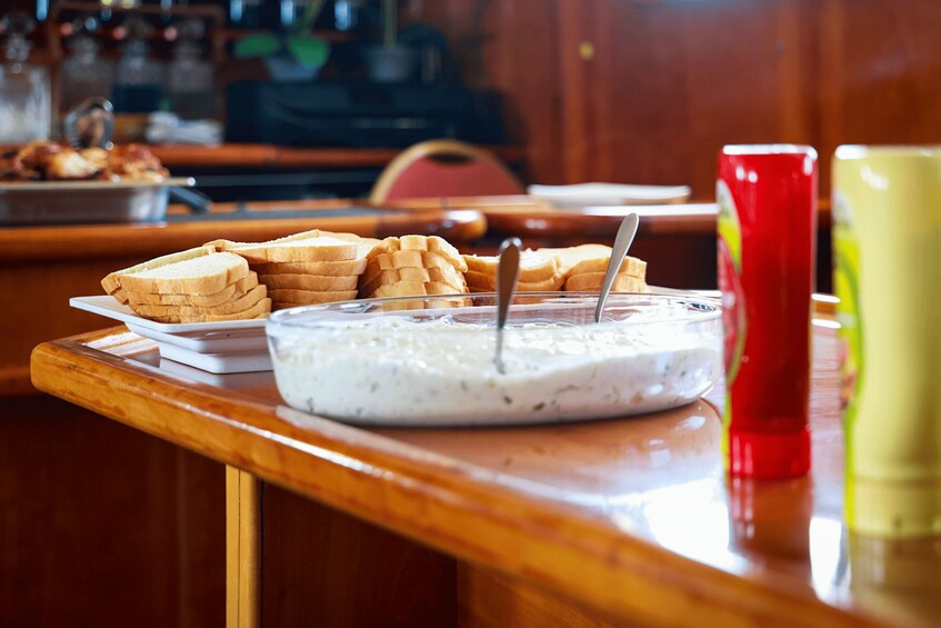 Terwijl het jacht naar de serene Turtle Bay vaart, grijp je de kans om in het kristalheldere water te zwemmen, mogelijk samen met schildpadden. De culinaire hoogstandjes die worden aangeboden zijn onder andere een overheerlijk traditioneel Cypriotisch diner met kip, geserveerd met zelfgemaakte aardappelsnippers, Cypriotische rijst, salade, brood en Tzatziki, Cypriotische stijl. Vegetarische en veganistische gasten kunnen genieten van een veganistische patty.