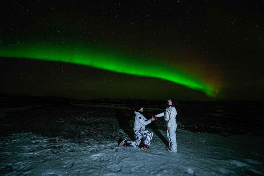 Wij zijn de enige noorderlichtexploitant in IJsland die warme wintersneeuwpakken en comfortabele buitenstoelen op locatie levert. Als je warm en ontspannen bent, kun je de magie van het noorderlicht dat boven je danst volledig in je opnemen - zelfs als we na middernacht wachten tot de show begint.