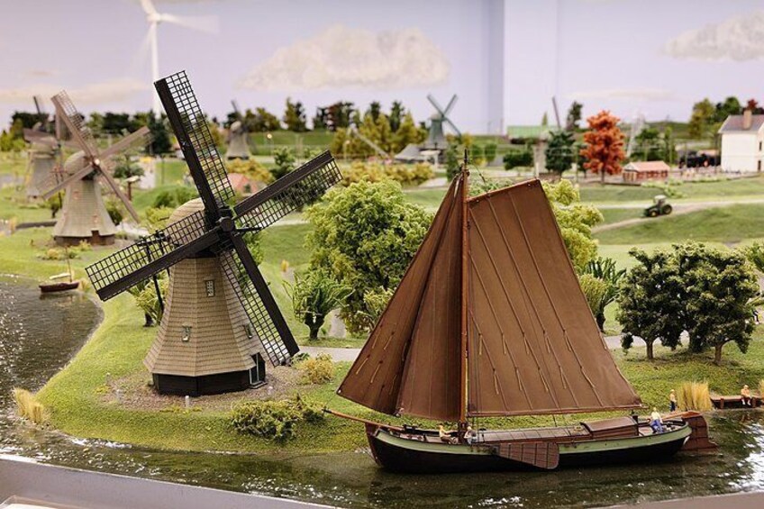 Als je goed kijkt, ontdek je veel verrassende en vaak grappige details. Terwijl je door onze miniatuurwereld loopt, kom je verschillende thema's tegen: uitgestrekte landelijke landschappen, vol windmolens en typisch Nederlandse dorpjes; de stad Rotterdam, zowel modern als historisch, inclusief de grootste overdekte miniatuurhaven van Europa; en last but not least Groot-Brittannië. Dit deel is nog niet helemaal klaar, maar wel te bezoeken en nu al erg interessant.