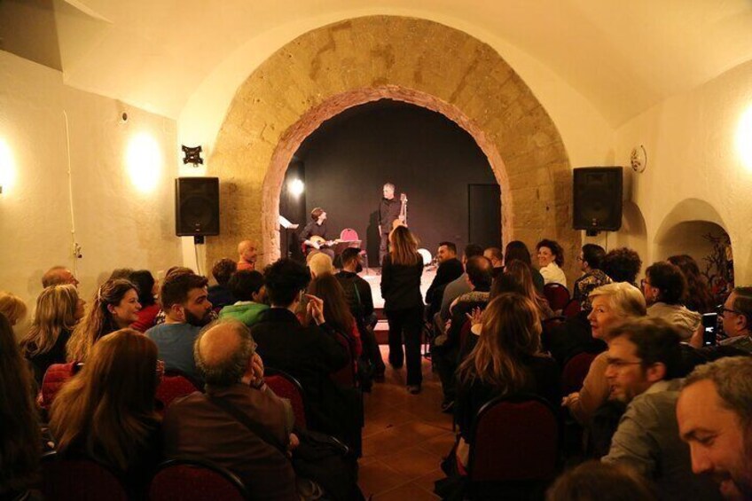 Toon liedjesmuziek en Napolitaanse dansen met proeverij