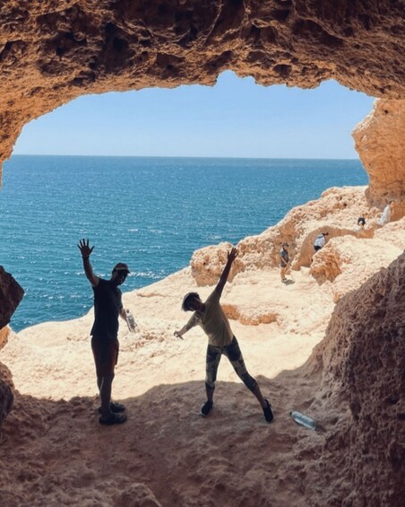Vervolgens gaat ons avontuur verder met een bezoek aan de grotten van Algar Seco, die bekend staan om hun unieke schoonheid. Met een adembenemend uitzicht op zee waar je versteld van zult staan. Ontdek de paden in een kalksteenlandschap. Ga vervolgens naar de grot van Boneca en bereid je voor op een spannende klifspringervaring in het oceaanwater van de Algarve.