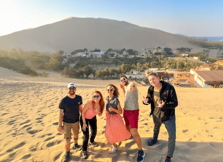 Dans l'après-midi, vous poursuivrez le Pérou Hop en bus jusqu'à Huacachina, une étonnante oasis naturelle au cœur du désert d'Ica. Vous aurez du temps libre pour explorer la lagune bordée de palmiers ou vous promener dans les dunes environnantes.