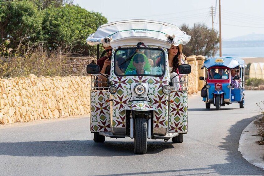 Gozo Tuk Tuk Chauffered Tour met overtocht en retour per Yippee Island Hopper-boot