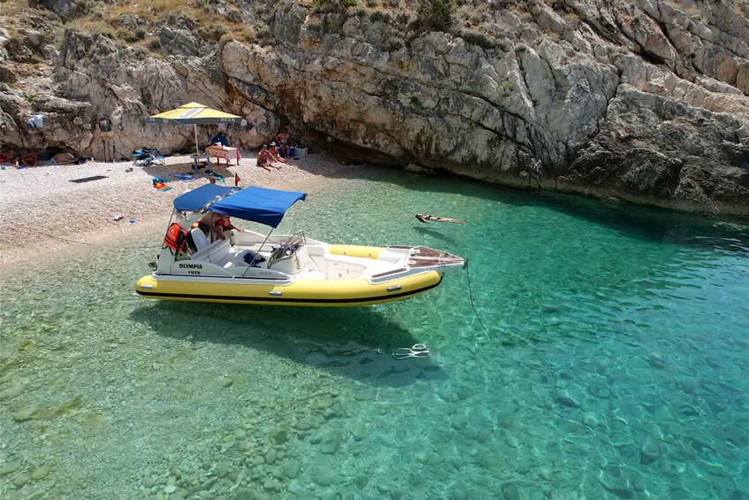 Après la visite de la grotte, nous nous dirigeons vers la plage magique de la baie de Dafina. Vous pourrez profiter de l'eau bleue cristalline et rafraîchissante de la baie de Dafina en nageant et en faisant de la plongée avec masque et tuba. Vous visiterez et explorerez également la fabuleuse grotte de Dafina, pleine de couleurs magiques et de formes sauvages étonnantes créées à la perfection par la nature. Nous resterons dans la baie de Dafina pendant 1 heure.